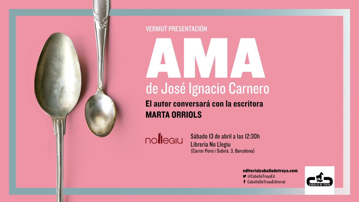 Este sábado 13 de abril a las 12:30 horas, se presenta en la Librería Nollegiu (Carrer Pons i Subirà 3, Barcelona), Ama de José Ignacio Carnero que ha salido recientemente a la venta. Con esta historia conocemos las memorias de un joven abogado que descubre que la literatura ni siquiera puede embellecer las miserias de la vida -la precariedad, el desamor, o el duelo-.