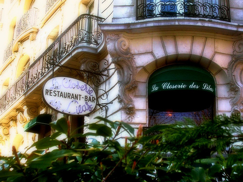 Paseo por los cafés literarios de París. Los principales -La Closerie des Lilas, Les Deux Magots y Flore- se encuentran situados en el distrito 6 de la ciudad y empezaron a cobijar talentos en el siglo XIX. El visitante sabe que ahí se guarda la memoria de una bohemia creativa. La Closerie des Lilas, ahora transfomado en restaurante y piano-bar, era el sitio en que se reunían los escritores naturalistas como Zola, los simbolistas de Baudelaire, los solitarios de Apollinaire. Fue también el lugar donde Jarry disparó a un espejo y Lenin preparó estrategias revolucionarias en partidas de ajedrez que disputaba contra el poeta Paul Fort. Sentado en el extremo ideológico opuesto, Pound compuso parte de sus Cantos. Pronto llegarían los surrealistas de Breton y la vanguardia pictórica. Después lo frecuentaron Beckett, Ionesco y los compañeros de su teatro del absurdo y los bebedores americanos escasamente santos (Fitzgerald, Hemingway). Los consumidores buscan en las mesas de madera los nombres de los artistas escritos en placas metálicas.