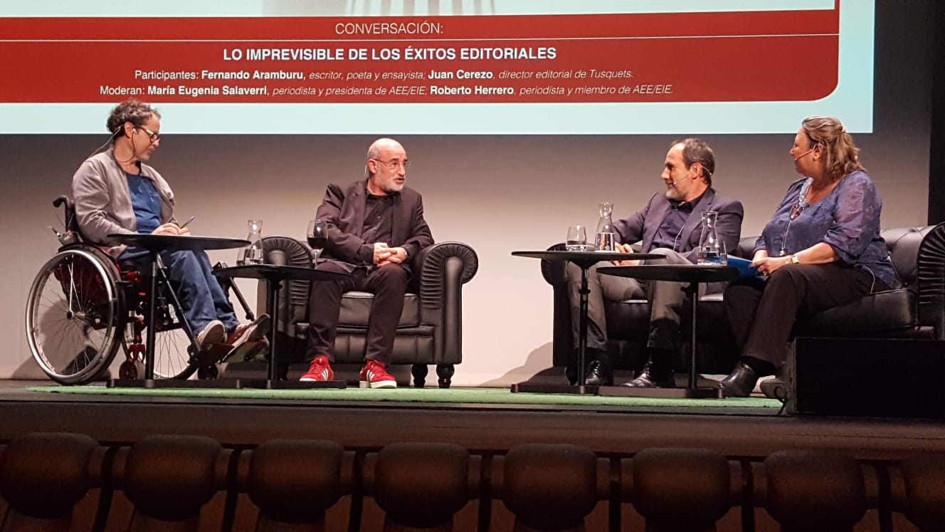 Fue “Patria” la que comenzó siendo el centro de la conversación de su autor con su editor de Tusquets, Juan Cerezo, que no planeó esta novela para que fuese el fenómeno social que ha acabado siendo y que ha hecho que dos años después de su lanzamiento sigamos hablando de ella. En esta conversación participaron los también escritores Roberto Herrero y María Eugenia Salaverri.