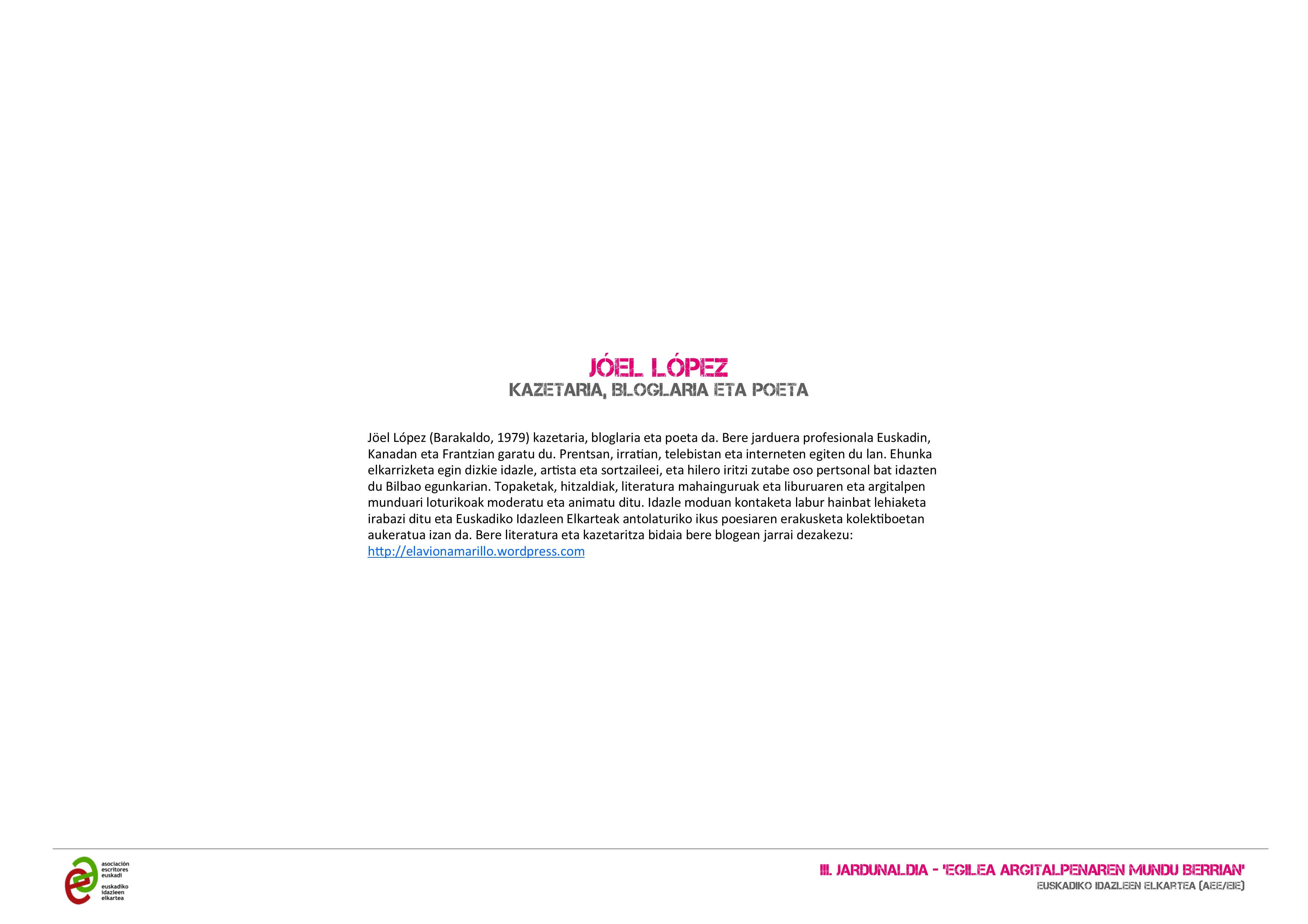 III Egilearen Jardunaldia Jöel Lópezek aurkeztuko du. |