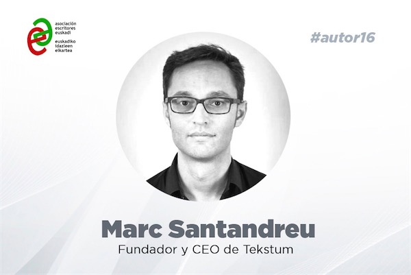 Marc Santandreu ‘Etorkizuneko liburu-dendak: Non erosiko dugu eta non irakurriko dugu?’ Teresa M. Pecesek moderatuko duen mahaingurua osatzen duten hizlarietako bat da, herenegun iragarri genuen moduan. Tekstum Solutions-eko sortzaile eta CEO da, liburuaren eta irakurketaren munduari adimen artifiziala eta big data aplikatu dion start-up alegia. Santandreuk beraz, Euskadiko Idazleen Elkarteak (AEE/EIE) antolatzen duen eta datorren irailaren 16an Bilboko Azkuna Zentroa-La Alhóndigan egingo den III ‘Egilea argitalpen mundu berrian’ Jardunaldiari ikuspuntu teknologikoagoa emango dio.