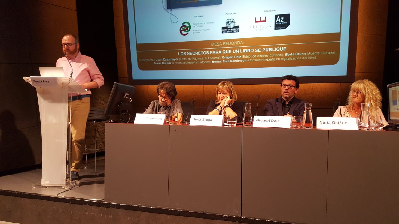 17:15etatik aurrera idazle batek bere liburua argitaratua izan dadin eman beharreko pausoak eman ziren aditzera. Liburuaren digitalizazioan aholkulari aditua den Bernat Ruiz Domènechek moderatuko zuen eta partaideak honakoak izan ziren: Juan Casamayor, Páginas de Espuma-ko argitaratzailea; Gregori Dolz, Alrevés Editorial argitaletxean eginkizun bera duena; Berta Bruna, literatura agentea; eta Núria Ostáriz, irakurle profesionala.