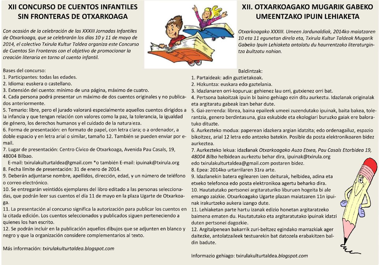 2-Lanak, gai librekoak, ez dira A-4 formatua (297x210 milimetroak) baino handiagoa izan behar,  ezta 300 pixelak hazbeteko baino gehiago ere. Posta elektronikoz bidali behar izango dira helbide honetara: Esta dirección de correo electrónico está siendo protegida contra los robots de spam. Necesita tener JavaScript habilitado para poder verlo.. Mezuan poemaren izenburua baino ez da azaldu behar. Egilearen datu pertsonalak erantsitako Word dokumentu batean izan behar dira,  lanaren izenburua agertuko delarik.