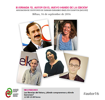 Tras la mesa de debate inaugural moderada por Javier Celaya, en la III Jornada 'El autor en el nuevo mundo de la edición' (Azkuna Zentroa-La Alhóndiga. Bilbao, 16/09/2016), se dará paso a la mesa redonda titulada 'Las librerías del futuro, ¿dónde compraremos y dónde leeremos?'. Intervendrán Luis Collado (Google), Silvia Clemares (Kobo), Marc Santandreu (Tekstum) y Gexan Sors (Librerías Elkar). Estará moderada por Teresa M. Peces, periodista y directora editorial de 'La Lectora futura'.