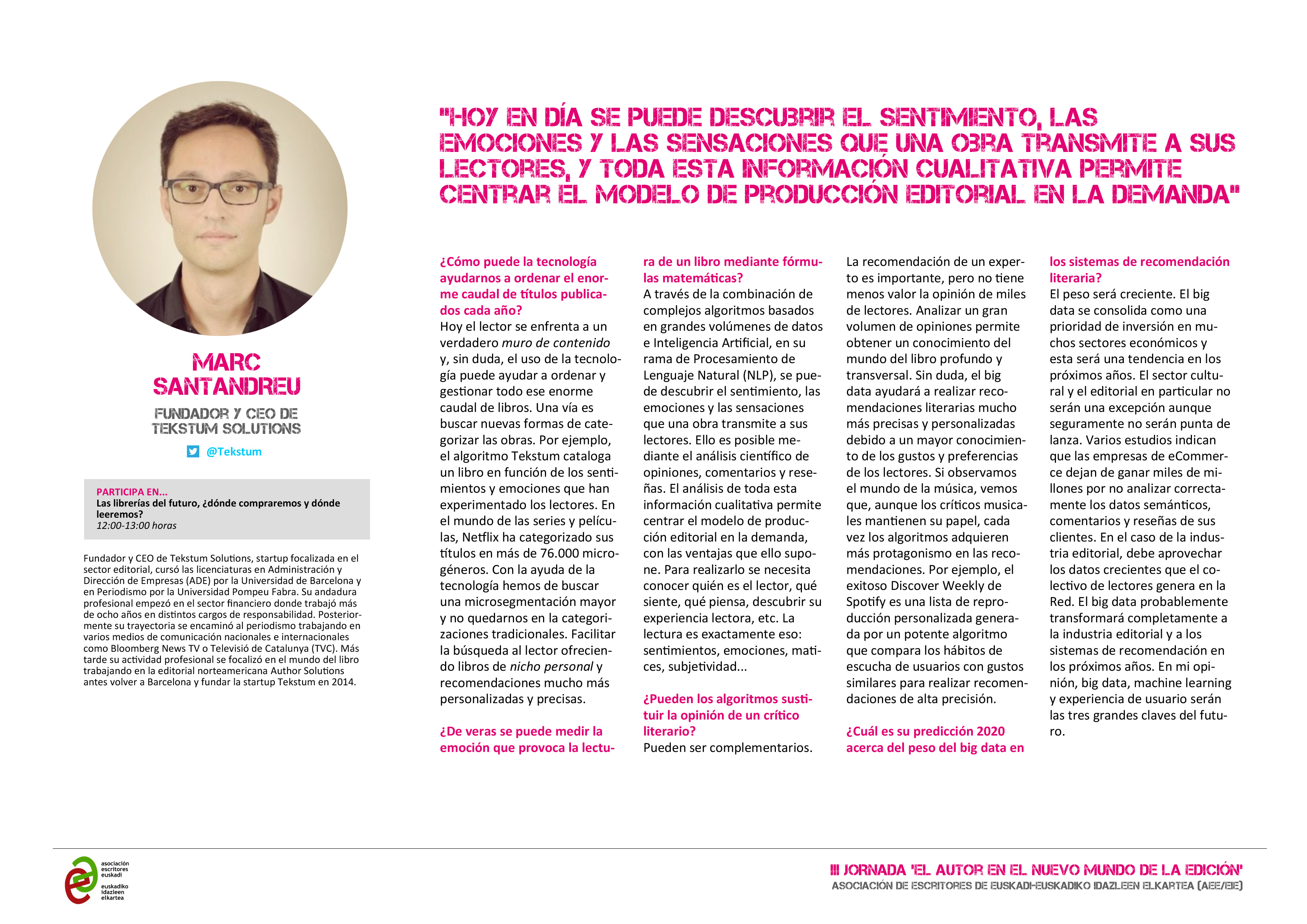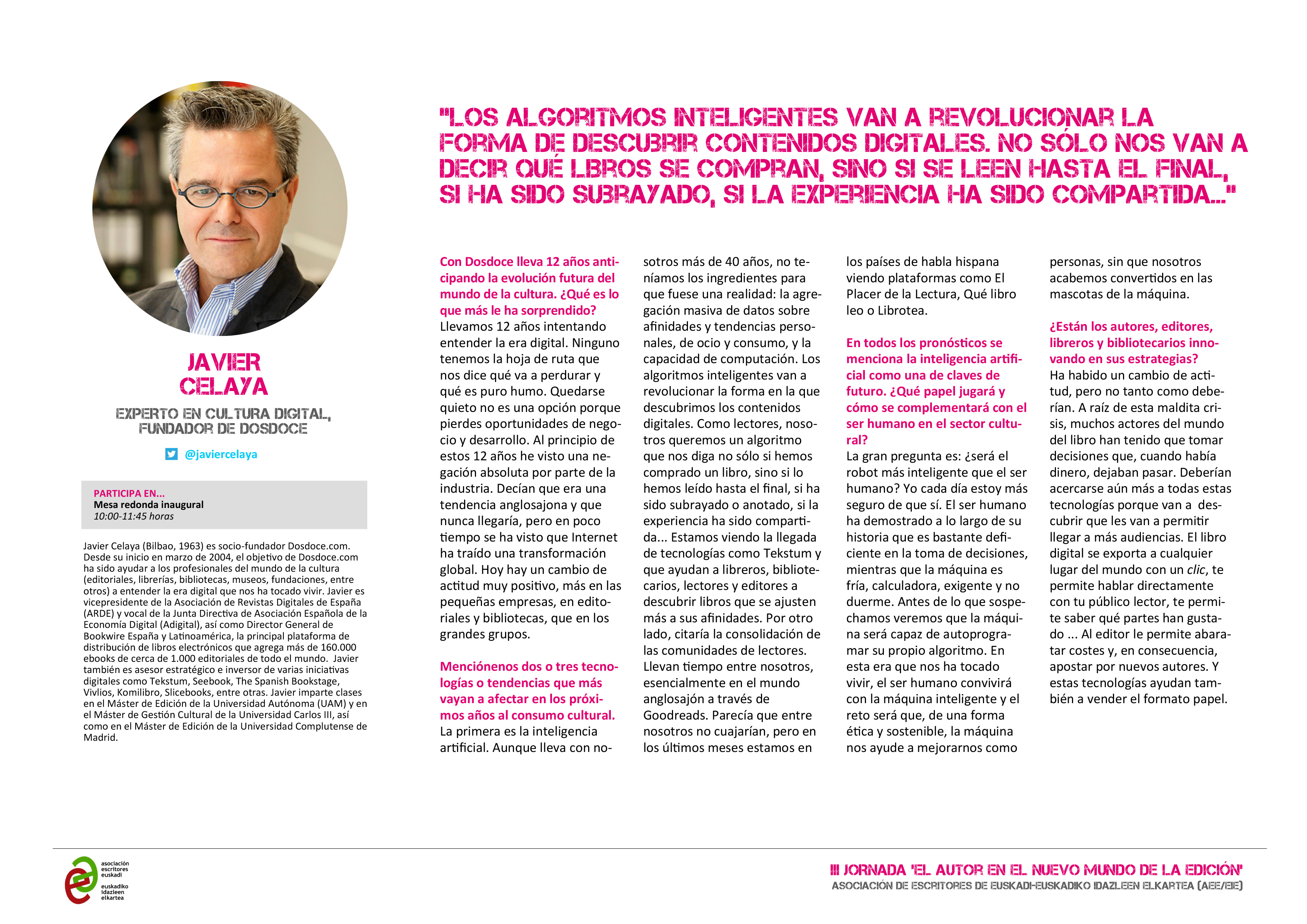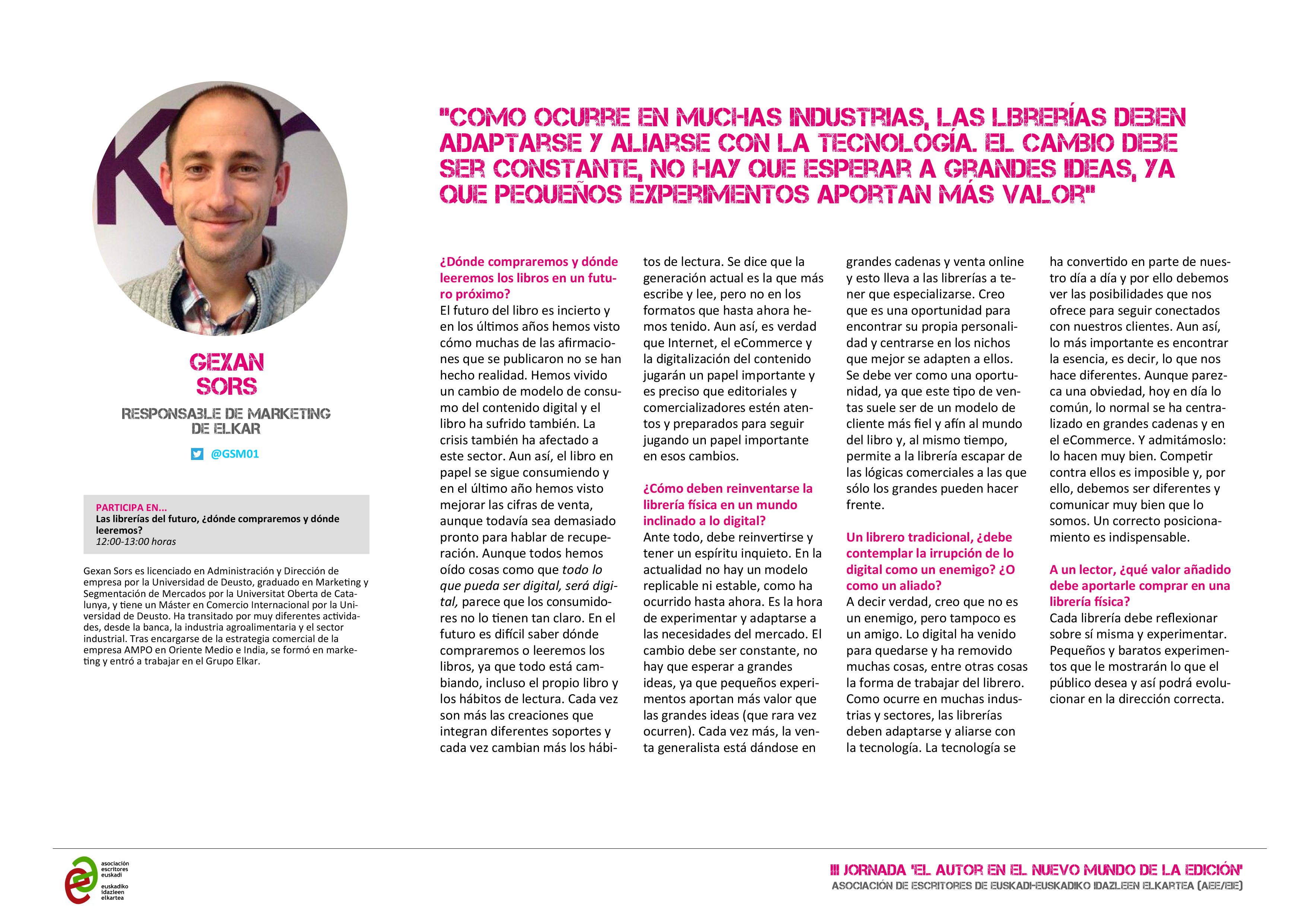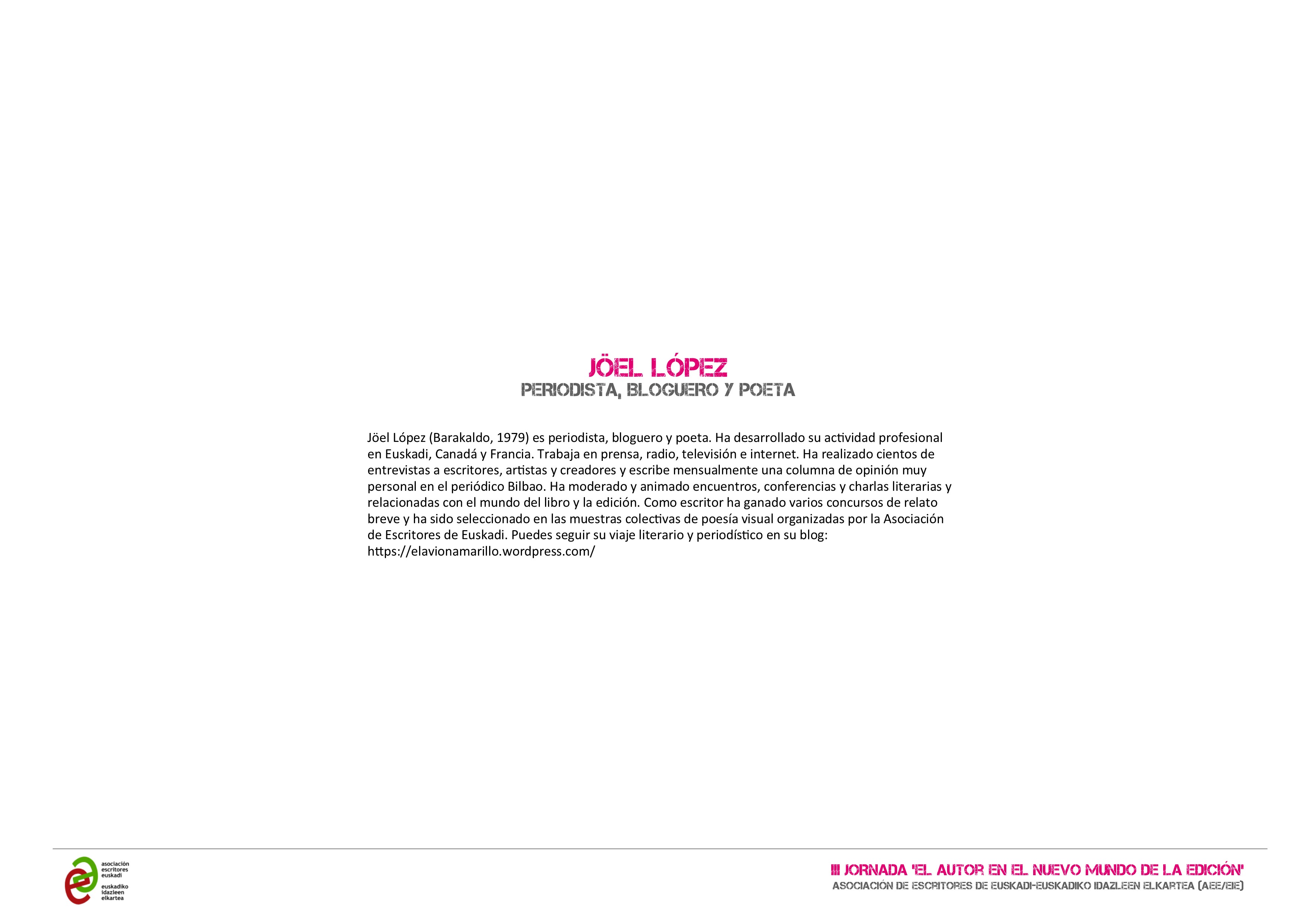 Tenemos el placer de presentar a los ponentes de la III Jornada 'El autor en el nuevo mundo de la edición' que se celebrará el 16 de septiembre en Azkuna Zentroa- La Alhóndiga de Bilbao.