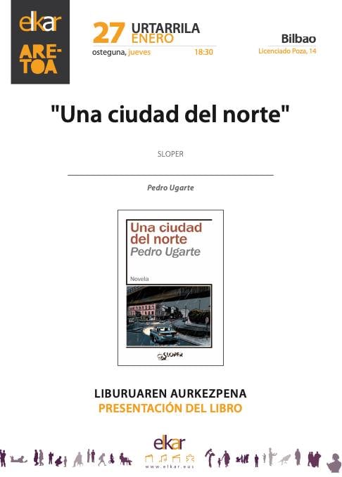 Esta tarde, a las 18:30h., en la librería Elkar (calle Licenciado Poza, 14 de Bilbao), la escritora, periodista y presidenta de la AEE/EIE, María Eugenia Salaverri, presentará junto con su autor la nueva edición en Editorial Sloper de UNA CIUDAD DEL NORTE de Pedro Ugarte.