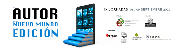 Esta jornada está organizada por la Asociación de Escritores de Euskadi/Euskadiko Idazleen Elkartea (AEE/EIE), con el apoyo del Departamento de Cultura del Gobierno Vasco y con la colaboración de la Biblioteca Foral de Bizkaia, del Gremio de Editores de Euskadi y de Cedro, a quienes agradecemos su constante contribución.