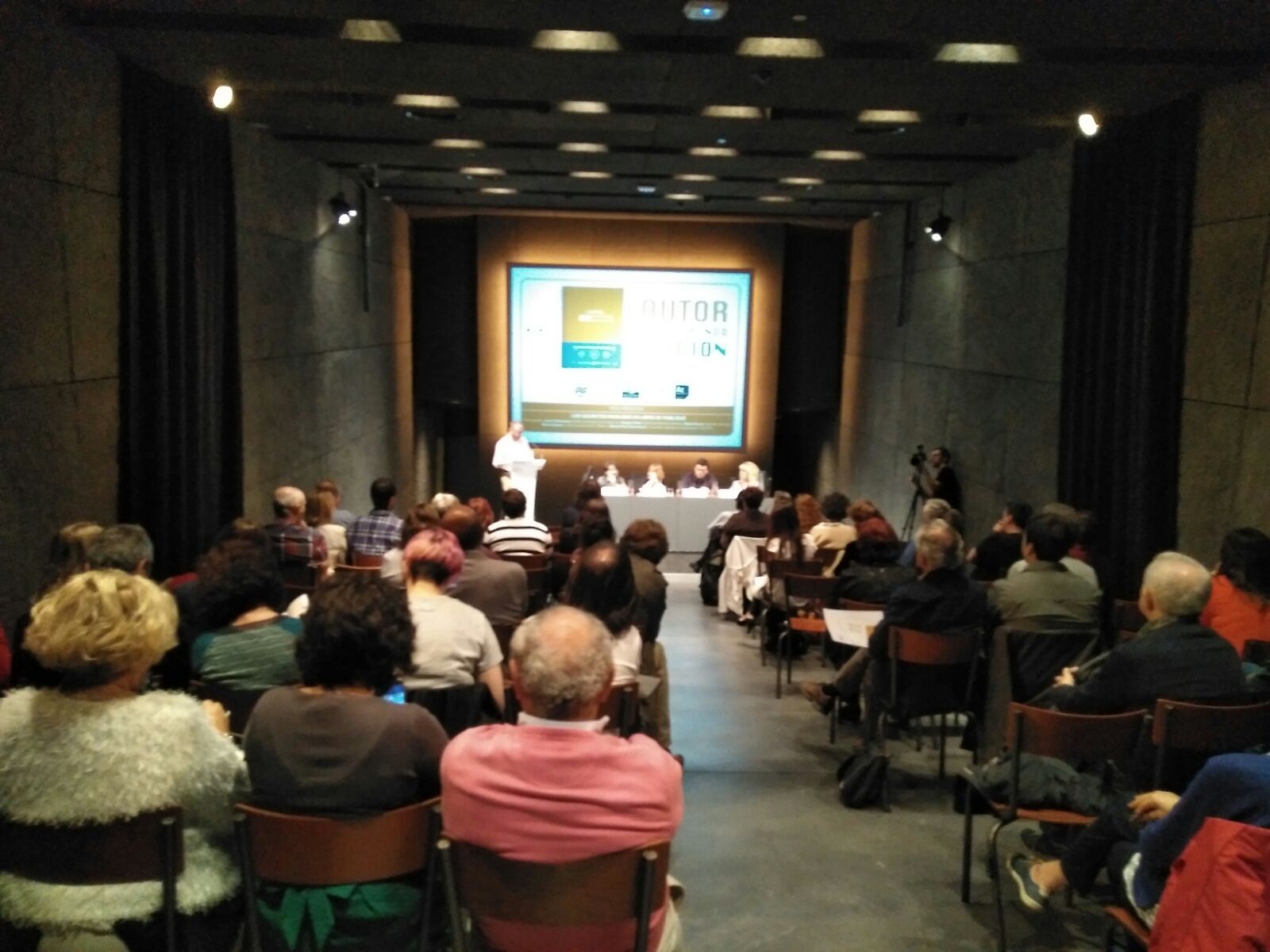 Por cuarto año consecutivo, el pasado viernes 15 de septiembre, desde la Asociación de Escritores de Euskadi/Euskadiko Idazleen Elkartea (AEE/EIE), y a propósito de la celebración de la Jornada 'El autor en el nuevo mundo de la edición', logramos reunir en la Sala Bastida de Azkuna Zentroa-Alhóndiga Bilbao a más de una veintena de profesionales que integraron las distintas mesas redondas programadas. Asimismo, se dieron cita un buen número de profesionales de la edición (editores, traductores, correctores…) y autores que, repartidos por el auditorio, participaron activamente en los espacios de debate que se suscitaron tras las intervenciones de los ponentes.