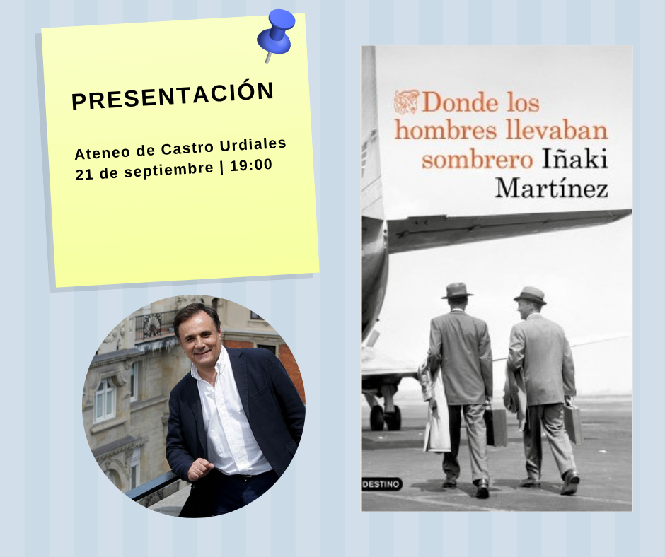 Este viernes el escritor Iñaki Martínez presenta su novela Donde los hombres llevaban sombrero (Destino, 2018) en el Ateneo de Castro Urdiales (Centro Cultural La Residencia) a las 19:00 horas.