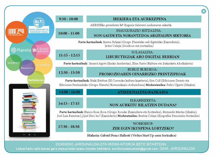 'Egilea argitalpen mundu berrian' Jardunaldiaren ordutegiak eta programa. Laraunbat honetan Bilbon